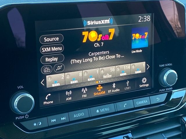 - Radio: AM/FM Audio System w/NissanConnect -inc: 6 speakers, Radio Data System (RDS), Apple CarPlay and Android Auto, 8" color display w/multi-touch control, SiriusXM satellite radio w/advanced audio features, 2 illuminated front USB connection ports (1 type A, 1 type C) for iPod interface and other compatible devices, Bluetooth® hands-free phone system and streaming audio, Speed-Sensitive Volume control (SSV), hands-free text messaging assistant and Siri Eyes-Free/Google Assistant voice recognition