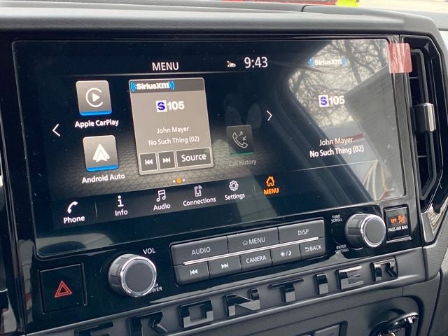 - Radio: SXM/AM/FM/AUX/USB Audio System -inc: 6 speakers, 12.3" color touch-screen display, wireless Apple CarPlay, wireless Android Auto, Bluetooth® hands-free phone system and streaming (audio or text message), voice recognition for audio features, Siri Eyes Free, NissanConnect services, Wi-Fi hotspot, 1 USB-A and 1 USB-C front ports and SiriusXM radio w/advanced audio features