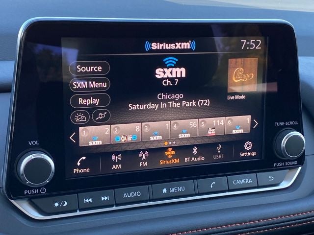 - Radio: AM/FM NissanConnect -inc: 6 speakers plus 2 tweeters, Apple CarPlay, Android Auto, 8" color touch screen display, Bluetooth®, 2 front USB type-C, Wi-Fi hotspot and NissanConnect Services powered by SiriusXM
