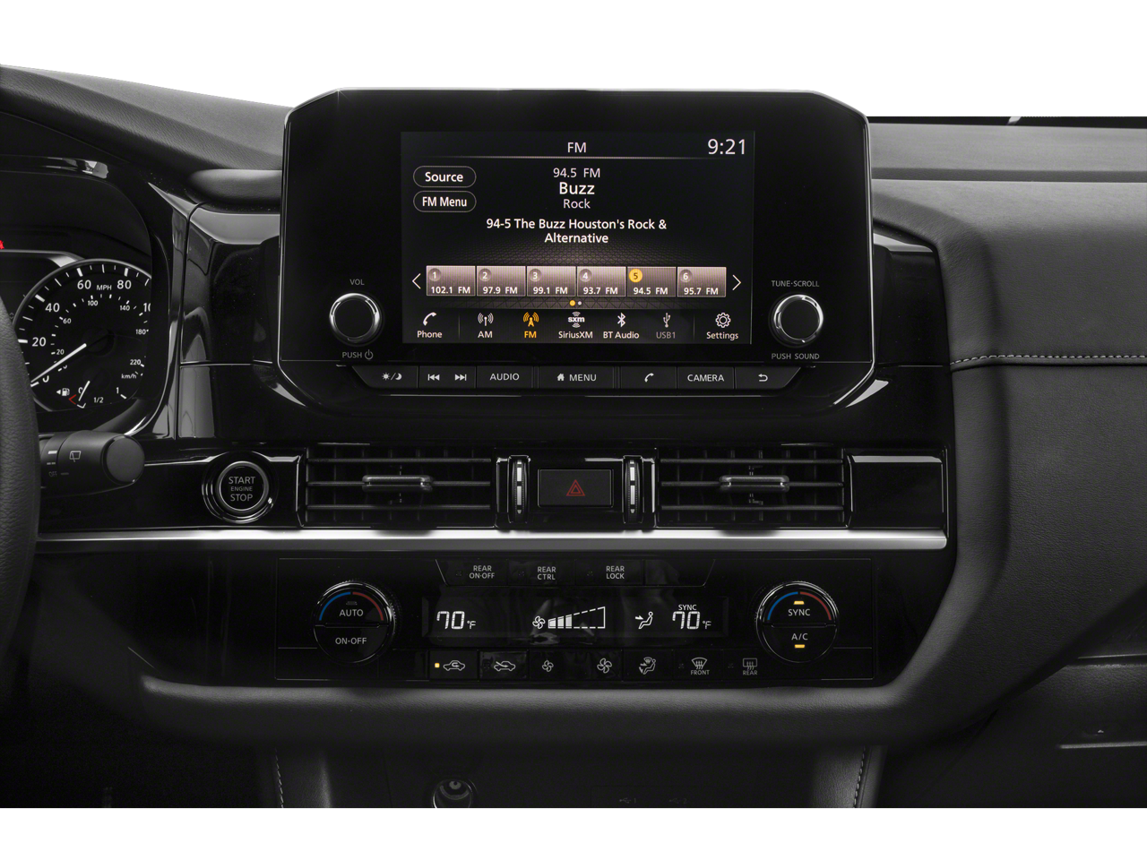 - Radio: AM/FM Audio System w/NissanConnect -inc: 6 speakers, Apple CarPlay and Android Auto, 8" color display w/multi-touch control, SiriusXM satellite radio w/advanced audio features, 2 illuminated front USB connection ports (1 type A, 1 type C) for iPod interface and other compatible devices, Bluetooth® hands-free phone system, streaming audio via Bluetooth®, hands-free text messaging assistant and Siri Eyes-Free/Google Assistant voice recognition